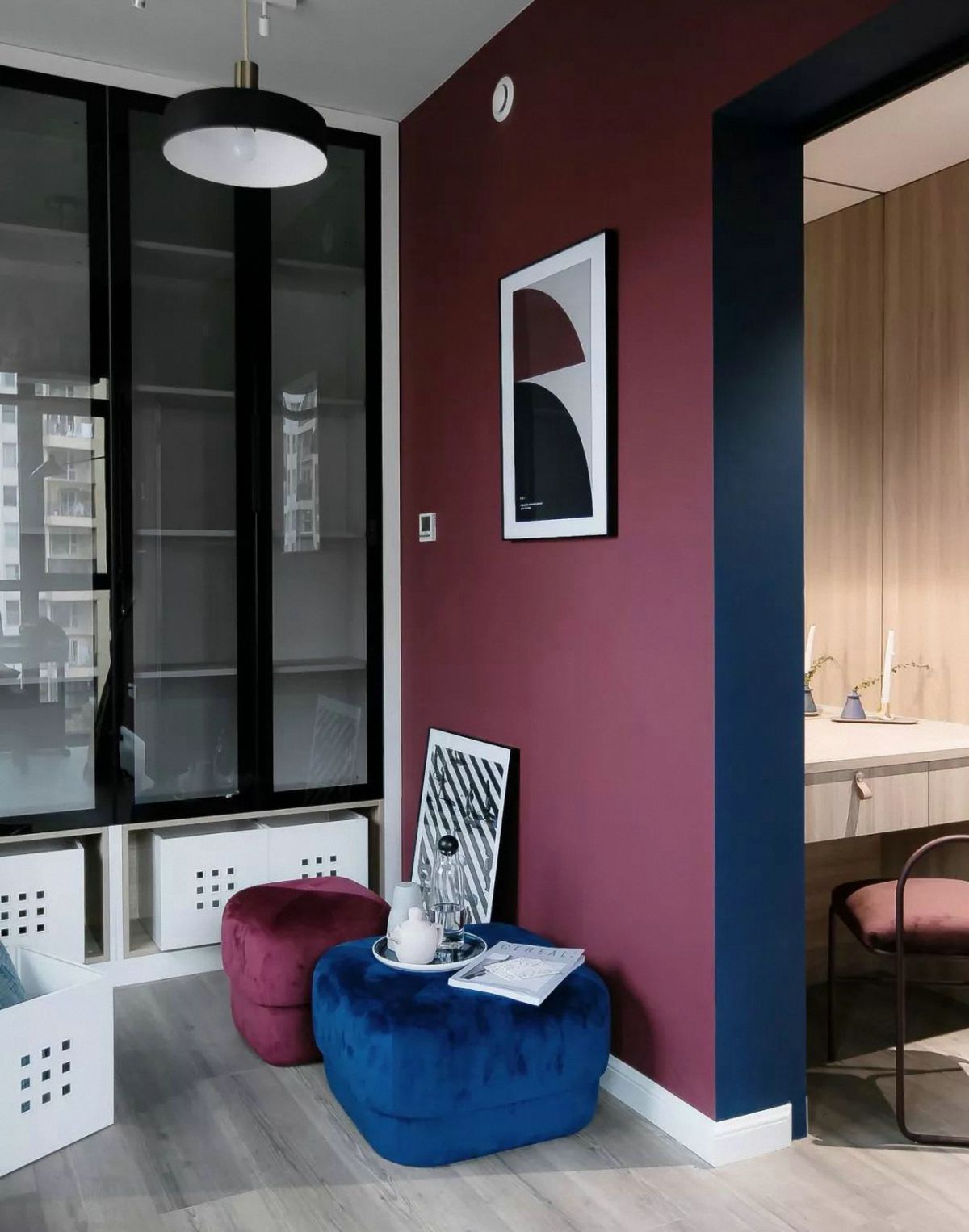 • 一對大學(xué)教師夫妻選擇在此地購房裝修用作度假旅居和朋友聚會,原始戶型狹小的玄關(guān)讓入戶感極差,我們拆掉墻體用玻璃代替,在總價光源的同時又拓展了空間,元戶型廚房較小,且女主還希望能有一個西廚,女主做的一手好甜點,希望能給她一個施展的空間。